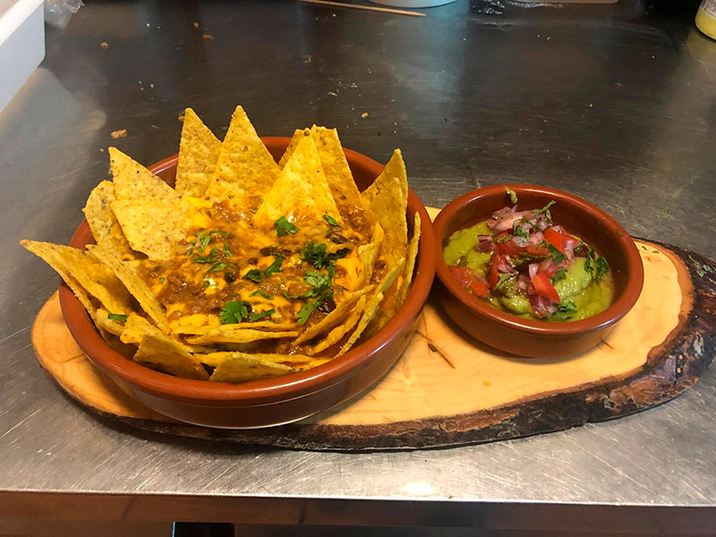 Guacamole, queso de cabra, salsa chipotle y jalapeños